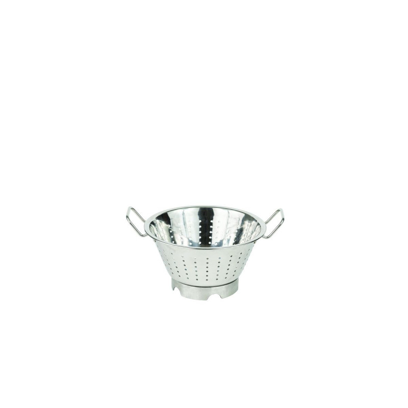 This Stainless Steel Kitchen Line Drainer with a 240 mm Diameter on a stand is equipped with 2 handles. Made of stainless steel, it is dishwasher safe. It has a height of 110 mm.