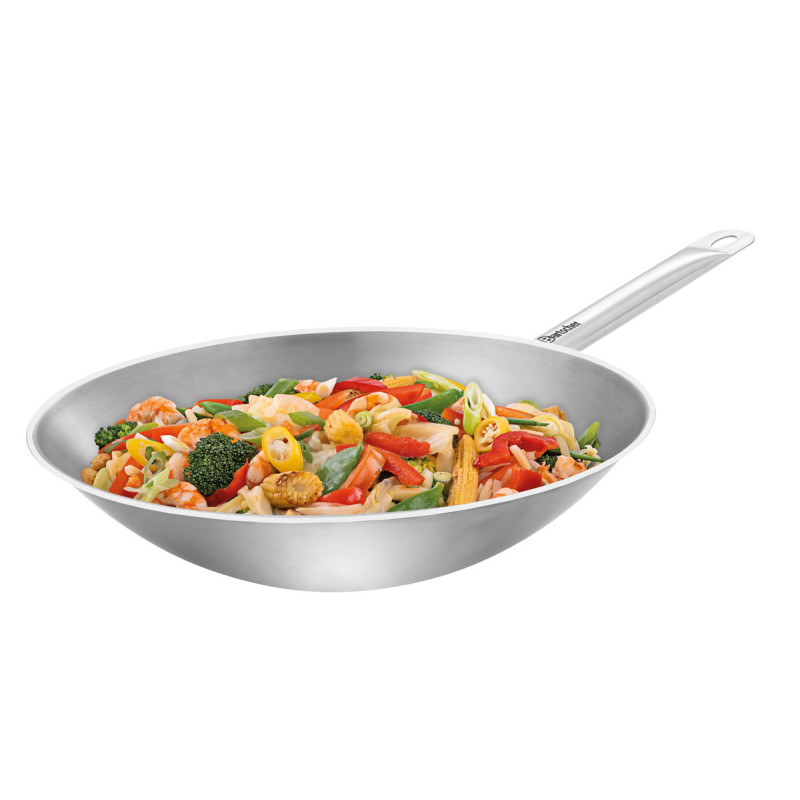 Idéal pour les professionnels de la restauration, ce Wok est fabriqué à partir de matériaux de haute qualité et conçu pour préparer des plats savoureux dans n'importe quelle cuisine. Préparez de délicieux plats aux saveurs asiatiques avec ce wok à fond plat en acier de 25,4 cm de la marque professionnelle. La poignée en bois protège vos mains de la chaleur du feu. Le wok est également facile à nettoyer.